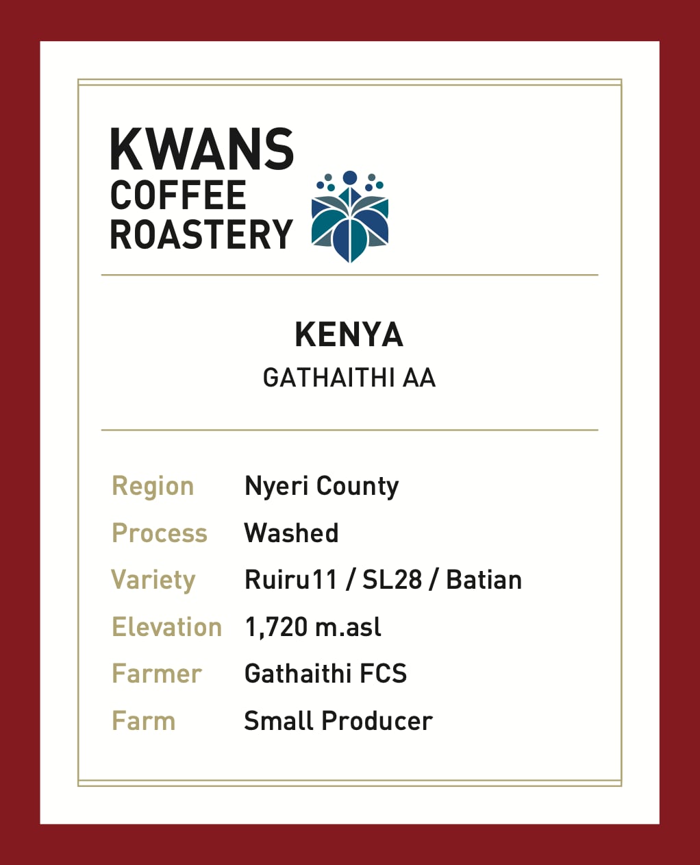 ケニア屈指のコーヒー産地であるニエリ郡(Nyeri)のガタイティ生産者組合によって生産される高品質なスペシャルティコーヒーです。